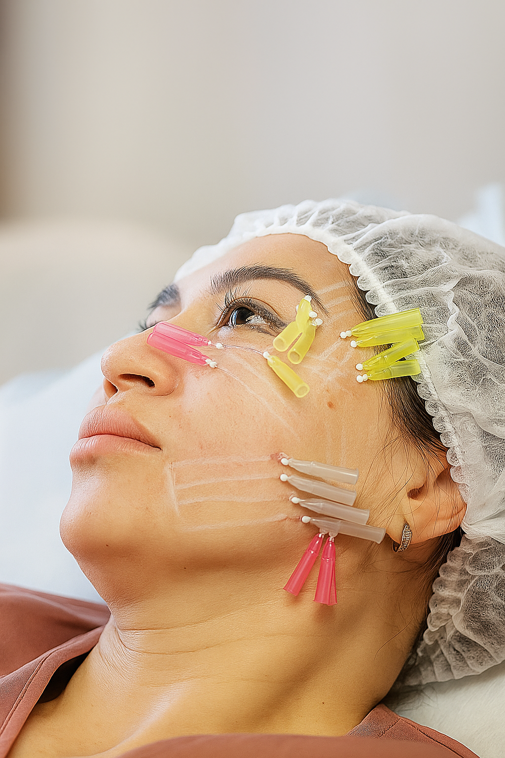 Lift and contour the face using biocompatible threads placed just beneath the skin. Threads gradually dissolve while stimulating collagen for firmer, lifted results.